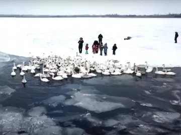 У мережі поширили відео з місця зимівлі лебедів на озері Біле в Старовижівському районі.