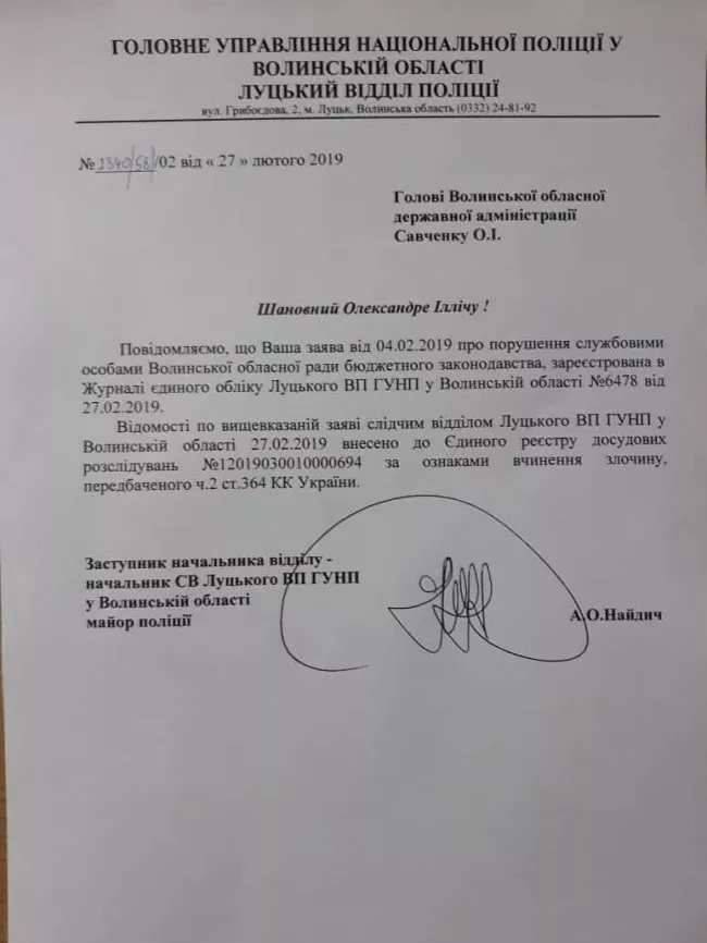 Справу порушили за частиною 2 статті 364 Криміального кодексу України (зловживання владою або службовим становищем), – повідомляє Волиньпост.