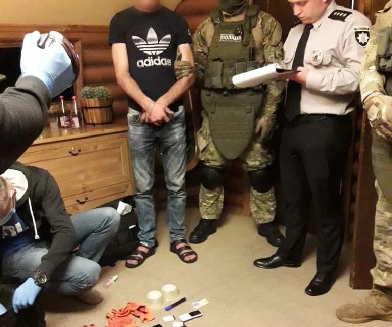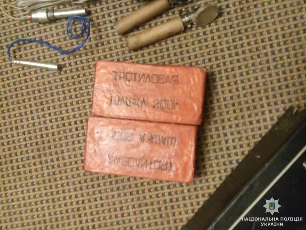 Під час обшуку в орендованому житлі поліцейські вилучили автомат Калашникова з глушником та пістолет з набоями. Крім того, вилучено дві тротилові шашки, механічні детонатори та дві упаковки пластиду. Також вилучено інші речові докази, зокрема «чорну бухгалтерію» щодо операцій з наркотичними засобами.