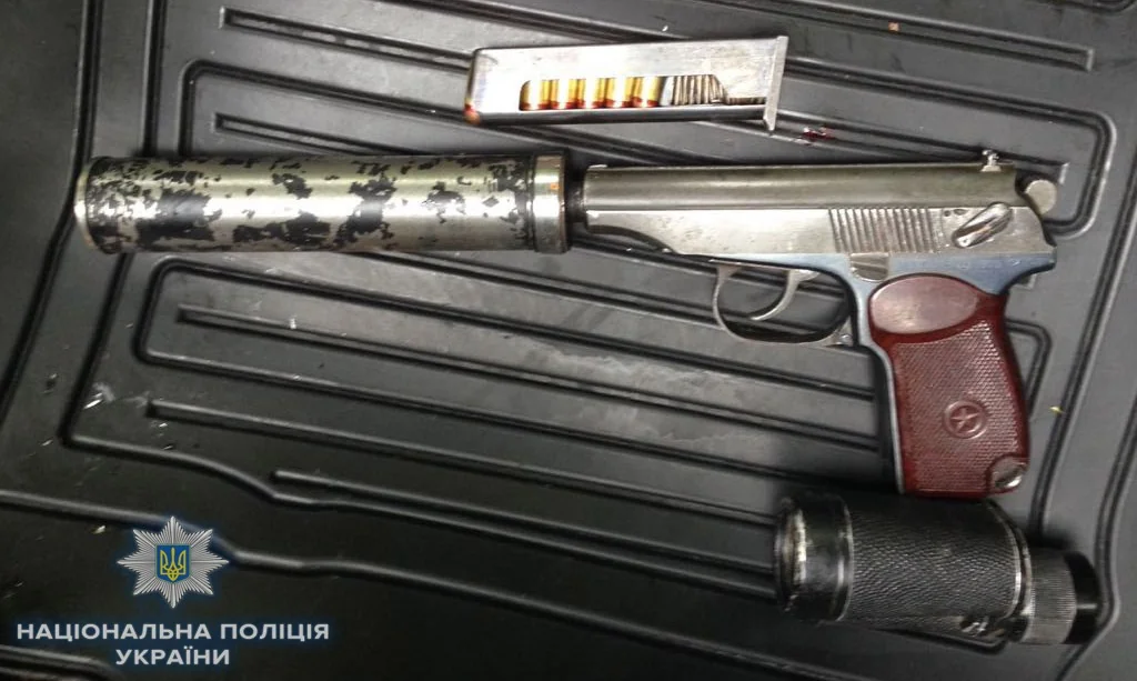 Під час огляду місця події в автомобілі вилучено пістолет з глушником, великі суми грошей у гривнях та іноземній валюті, а також наркотичні засоби.
