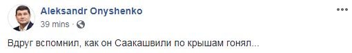 Нардеп Олександр Онищенко пригадав, як президент «ганяв дахами» екс-губернатора Одеської області Михеїла Саакашвілі.
