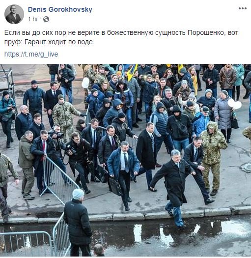 Блогер Денис Гороховський і зовсім побачив на фото «божественну сутність». «Гарант ходить по воді», – коментує він.