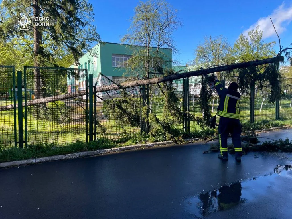 Повалені дерева та зірвані дахи: рятувальники ліквідовували наслідки негоди на Волині