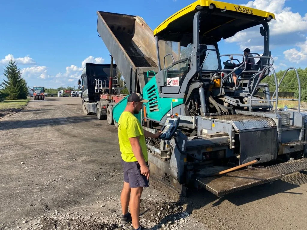 На одному з під’їздів до пункту пропуску уже укладено перший з трьох передбачених проєктом шарів асфальтобетонного покриття та розпочато роботи з влаштування тротуару.