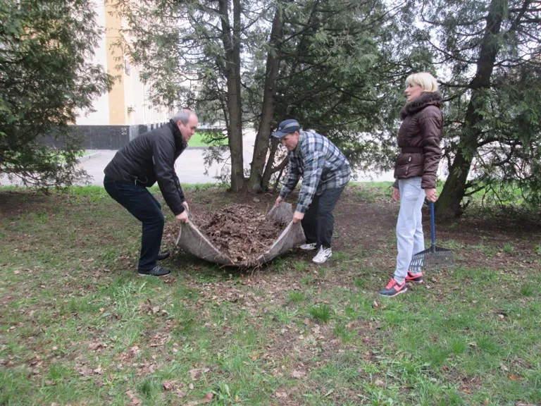 Гуртом прибирали територію біля адмінбудинку: згрібали опале листя, підмітали доріжки, висаджували дерева. Трудилися дружно і завзято.