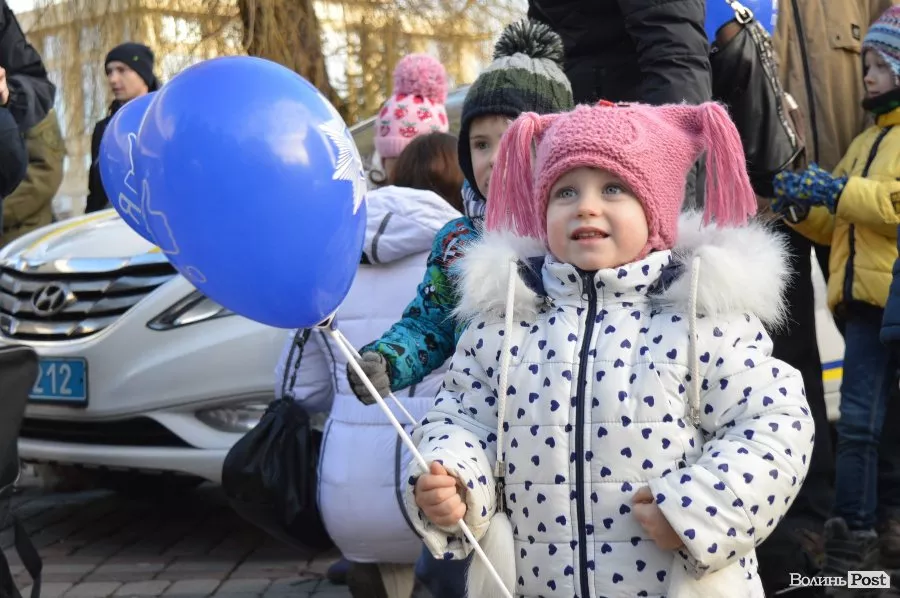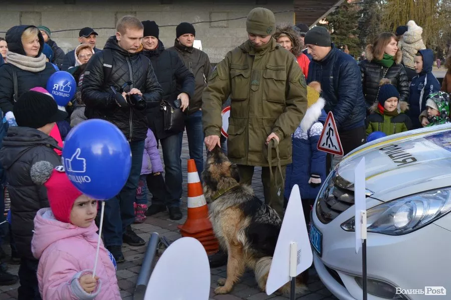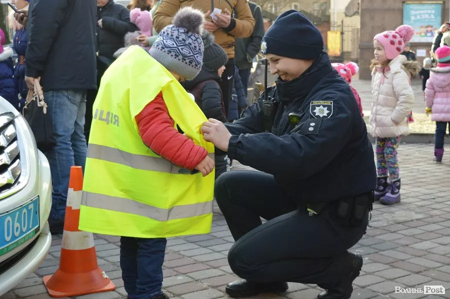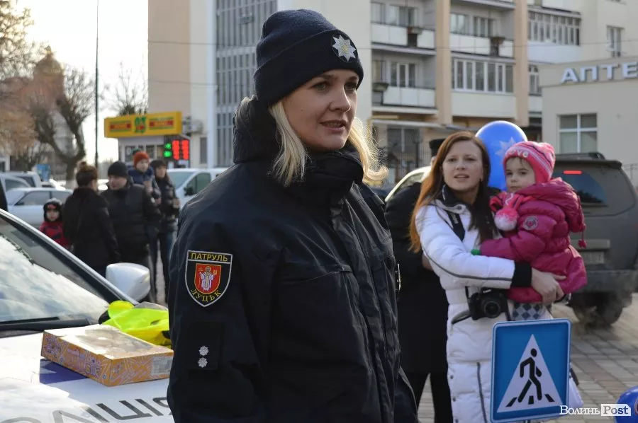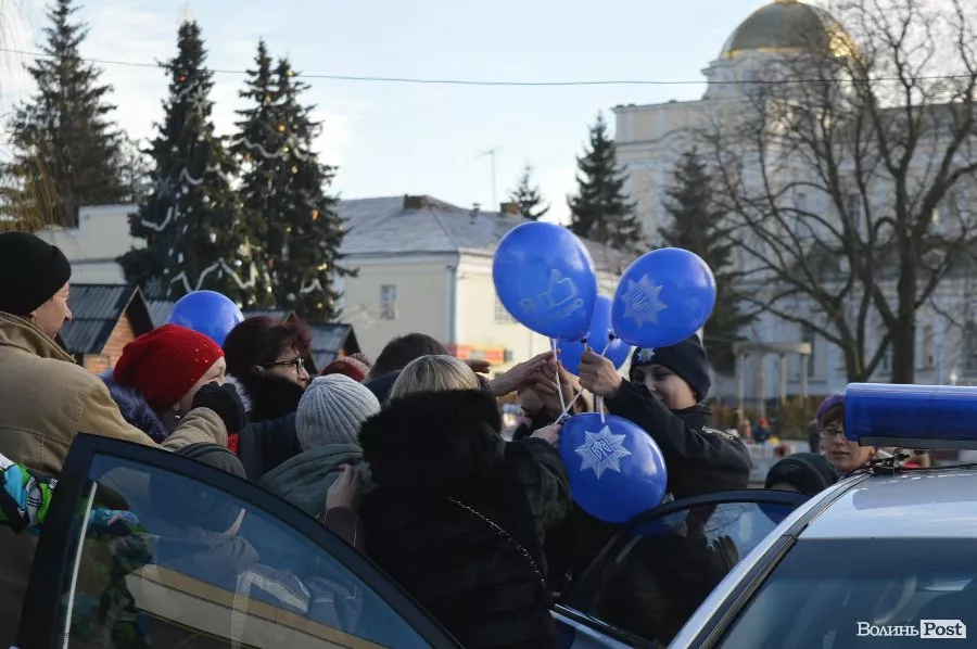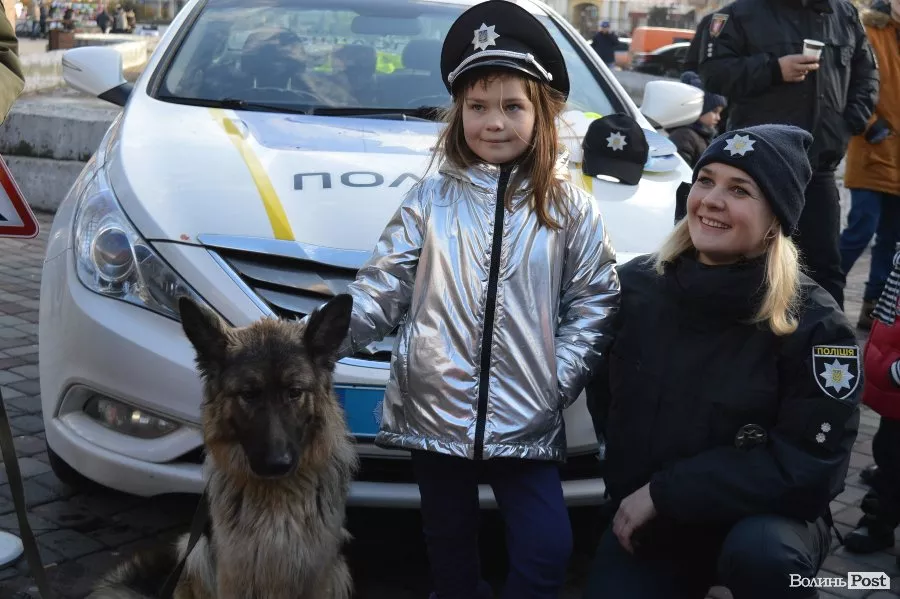У центрі Луцька працівники патрульної поліції спілкуватись з дітьми та їхніми батьками, проводили вікторини, дарували повітряні кульки та смаколики, а також катали малечу у службових автомобілях.