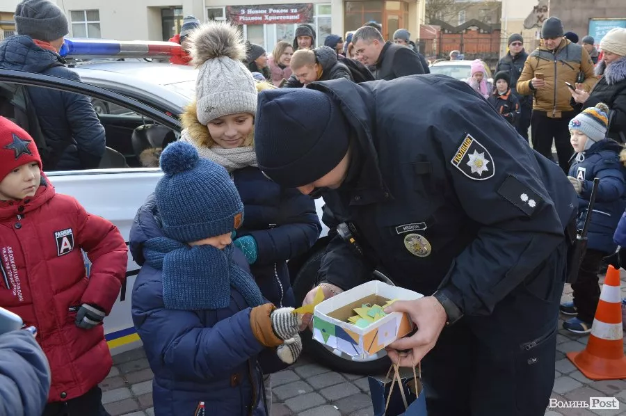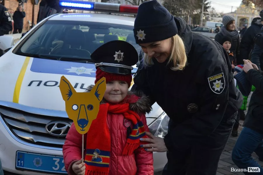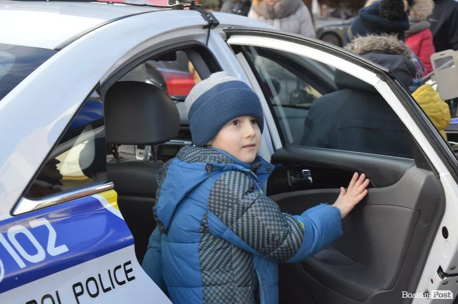Працівники патрульної поліції Луцька роздавали цукерки та катали у службових автівках
