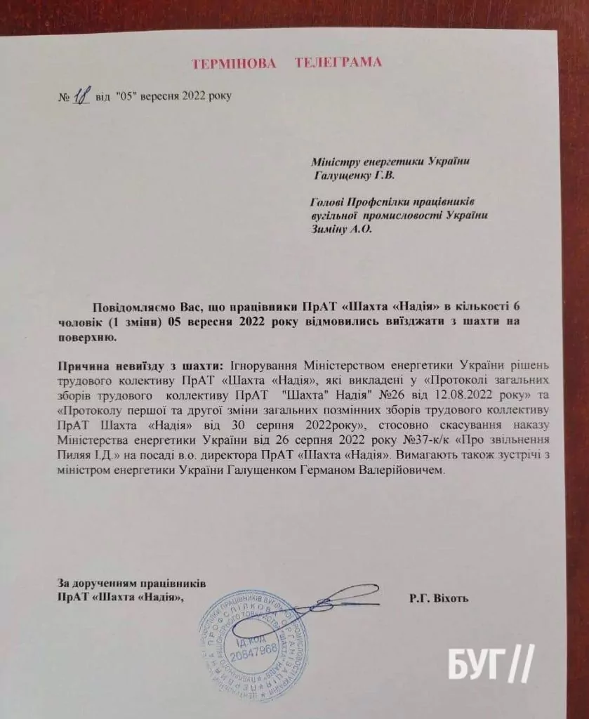 Як стало відомо БУГу, працівники першої зміни знаходяться під землею через ігнорування Міненерго рішень трудового колективу.