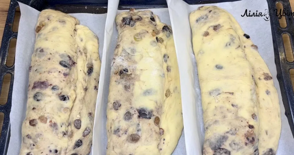 Між штоленами на деко покладіть пергамент, щоб вони не прилипали один до одного. Випікайте при температурі 160 градусів 1 годину.