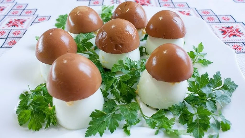 Оригінальна закуска з варених яєць, що на вигляд нагадує маленькі гриби, стане хітом святкового толу. Простий рецепт без дорогих інгредієнтів сподобається усім та ще й легкий у приготуванні.
