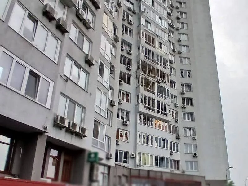 Унаслідок удару пошкоджень зазнала 25-поверхівка і прилегла територія. В будинку пошкоджені вікна з 3 по 11 поверхи в одному під’їзді.