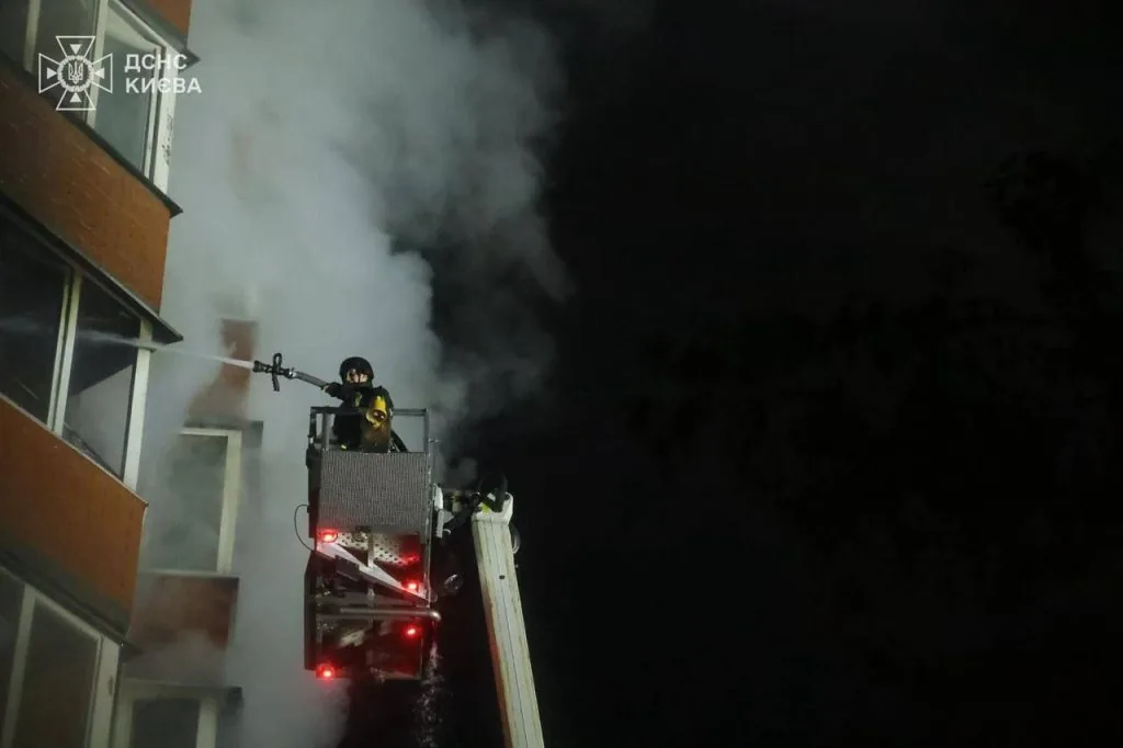 Пожежі внаслідок російської атаки спалахнули в Печерському, Деснянському й Голосіївському районах, а в Дарницькому й Дніпровському районах окупанти поцілили в житлові багатоповерхівки. Там також спалахнули пожежі.