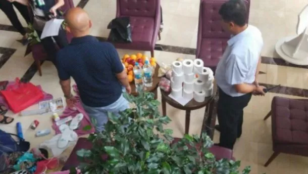 Проте росіяни не очікували, що персонал готелю протягом тижня спостерігав, як туристи забирали речі з готелю і складали в свої сумки. Проте під час виїзду з готелю росіяни були зупинені співробітниками цього готелю.