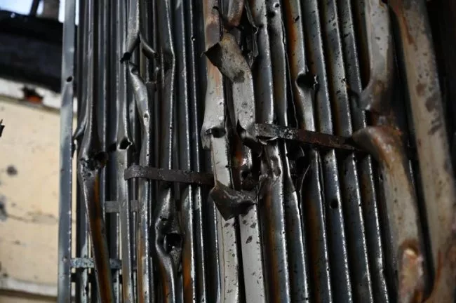 Голова ОВА опублікував світлини, на яких чітко видно, як після вибуху ракети розлітаються сформовані округлі елементи та буквально прорізають метал.
