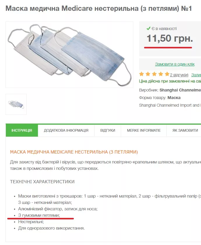 Всі вказані надбання лікарня робила протягом декількох тижнів, ціна за одну маску коливається від 12,50 до 14 грн за штуку. Швидкий пошук в гуглі дає зрозуміти, що придбати можна було значно дешевше, особливо беручи до уваги об’єм замовлення.