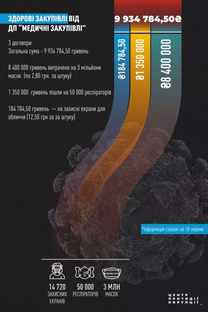 Центр Протидії корупції звернувся до НАБУ із відповідною заявою про вчинення злочину. Загалом від початку травня ЦПК оскаржив закупівель щодо COVID-19 на загальну суму щонайменше 91,3 млн грн.