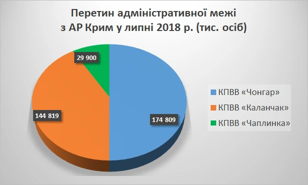 Протягом липня 2018 року адміністративний кордон Херсонської області і окупованій Автономної Республіки Крим перетнули в обох напрямках 349 тисяч 528 чоловік і 53 тисяч 276 транспортних засобів.