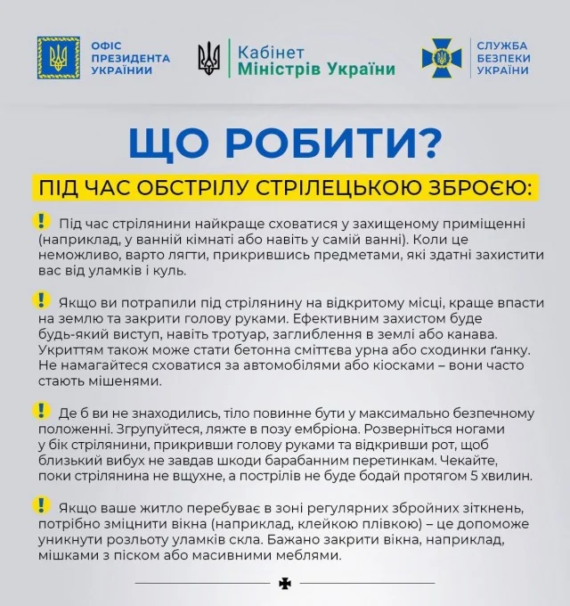 СБУ оприлюднила інструкції стосовно того, що робити під час різних видів обстрілів.