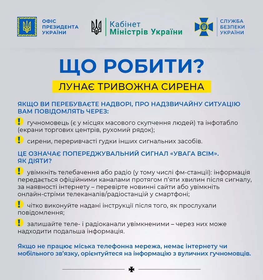Повідомили також, що робити, коли почне лунати тривожна сирена: