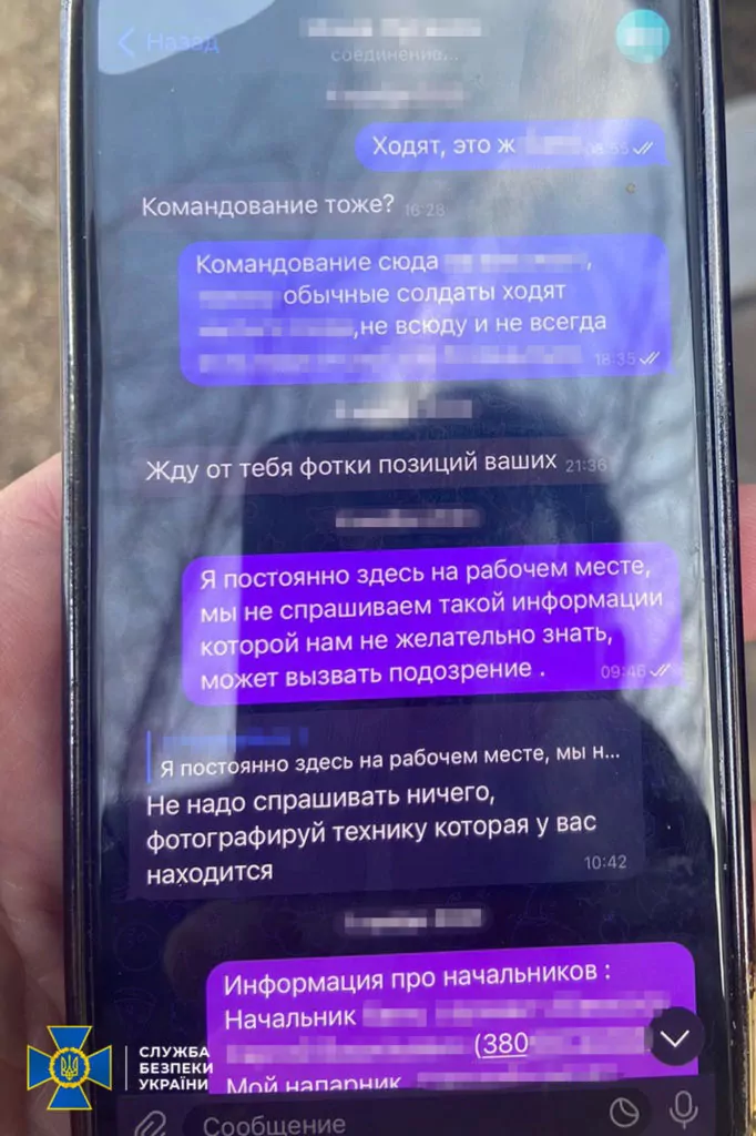 Подальша комунікація між зрадником та його російським «куратором» відбувалась через анонімний чат у месенджері. Під час обшуку у затриманого вилучено мобільний телефон, який він використовував для спілкування з окупантами.