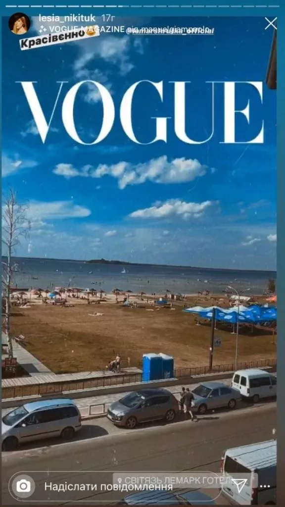 Зірка оселилася у готельному комплексі «Лемарк», де її зустріли із фруктами та шампанським: «Якщо ніхто з вас не був на озері Світязь, то з вікна готелю «Лемарк» воно має ось такий фантастичний вигляд», – розповідає ведуча і демонструє підписникам неймовірні краєвиди: «Франція, Лазурний берег. Перший раз бачу озеро, де люди ходять по воді», – каментує Леся Нікітюк.
