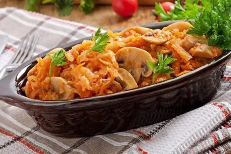 Тушена капуста з грибами