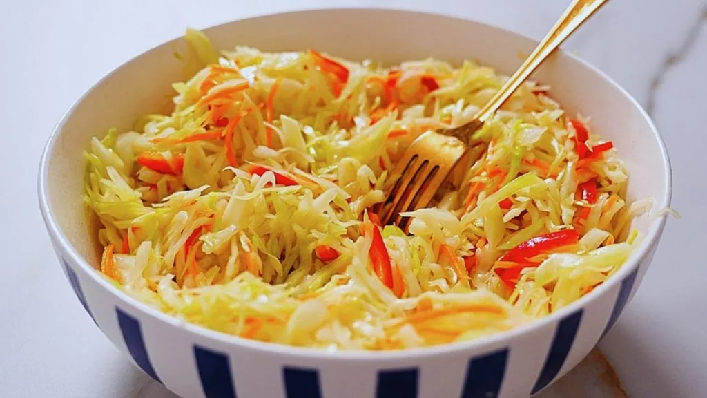 - Змішайте капусту, моркву, яблучні скибочки та насіння кмину.