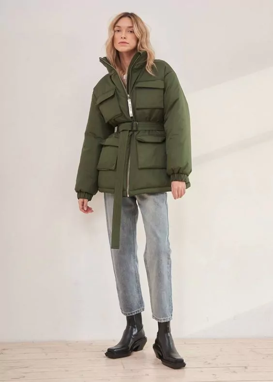Для дівчат, які в утепленій куртці бояться виглядати на кілька розмірів більше, стилісти рекомендують вибирати моделі з поясом. Ремінець допоможе позначити талію і зробити образ жіночнішим.