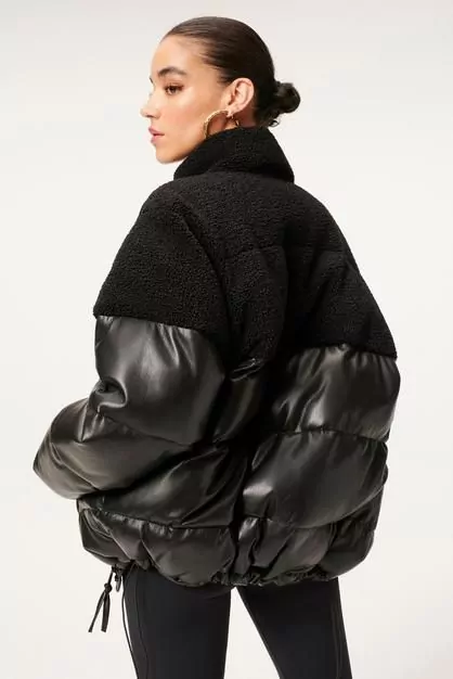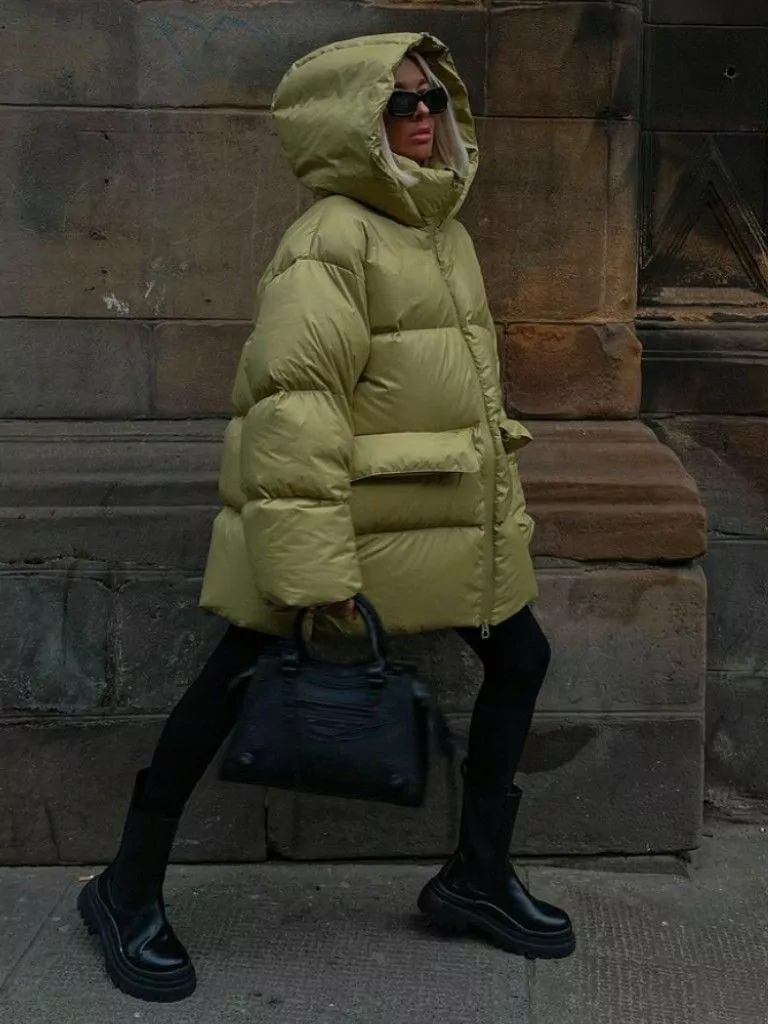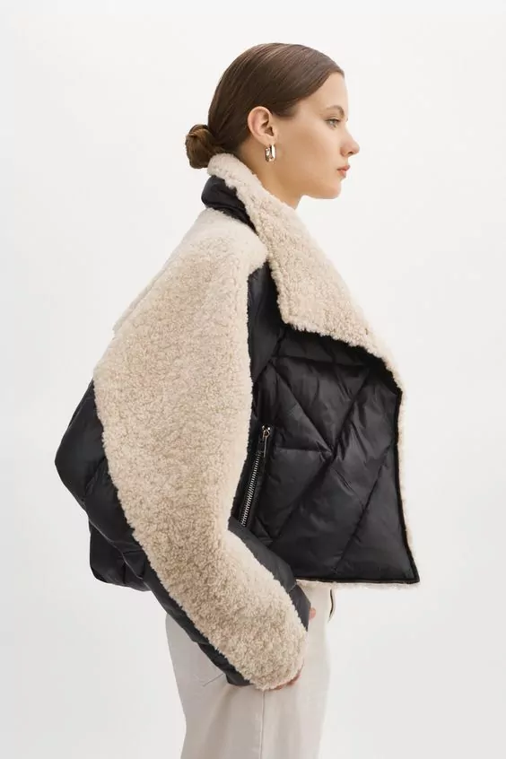 Пуховик змішаного типу – ще одна трендова модель цієї зими. Силует оверсайз надає модної привабливості, а поєднання шерпи та нейлону або еко-шкіри робить цей верхній одяг оригінальним.