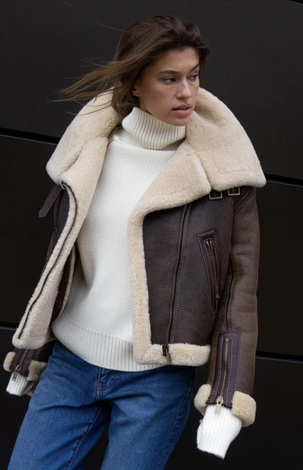 Цей осінній тренд можна інтегрувати і в зимовий гардероб. Звичайно, для холодної зими такий варіант не підійде, але якщо ви рідко ходите пішки, то можете сміливо розглядати дублянку-авіатор як верхній одяг на зиму 2024 року.