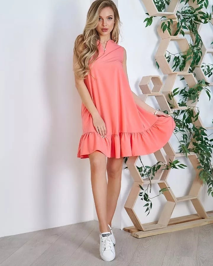 Для прогулянки з подругами або романтичного побачення підберіть плаття міні коралового кольору з воланом. Одягайте його з кедами або кросівками, а доповнити лук можна солом’яним капелюхом і маленькою сумочкою-клатчем.