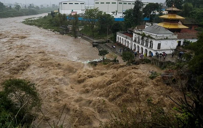 У розташованому серед пагорбів Катманду кілька річок вийшли з берегів, затопили дороги та численні будинки, відрізавши столицю, відому своїми храмами, від решти країни автосполученням.