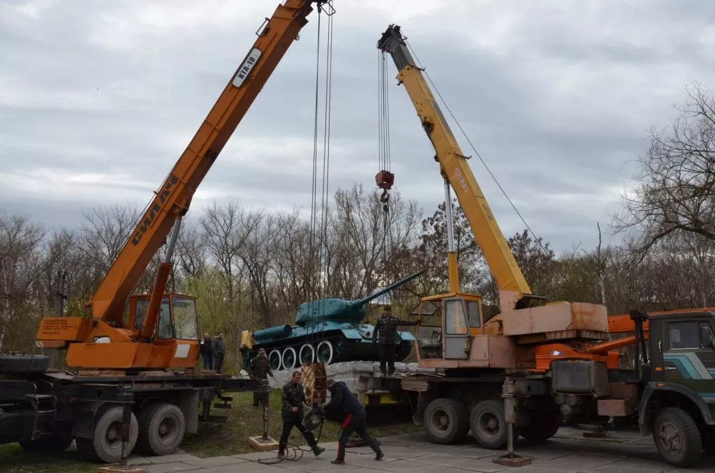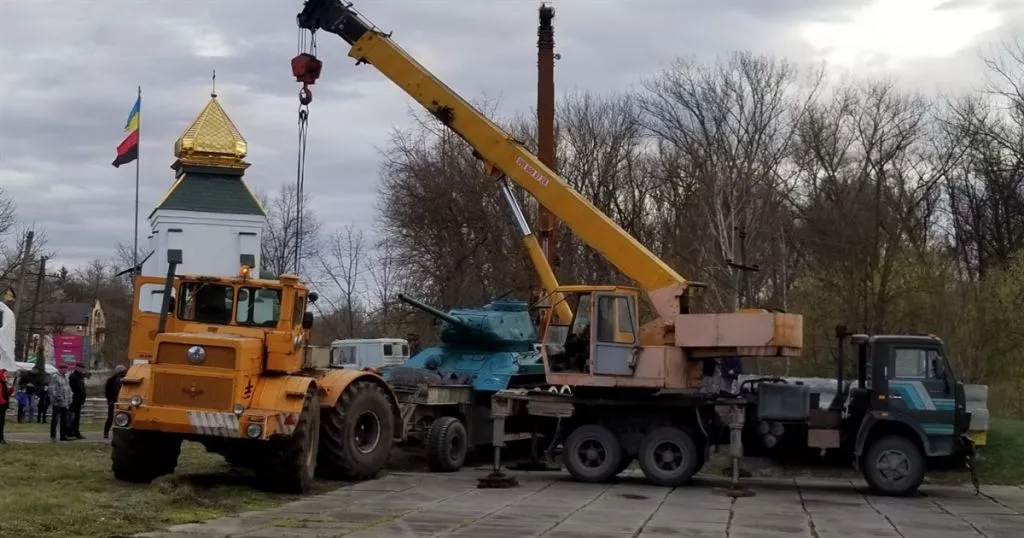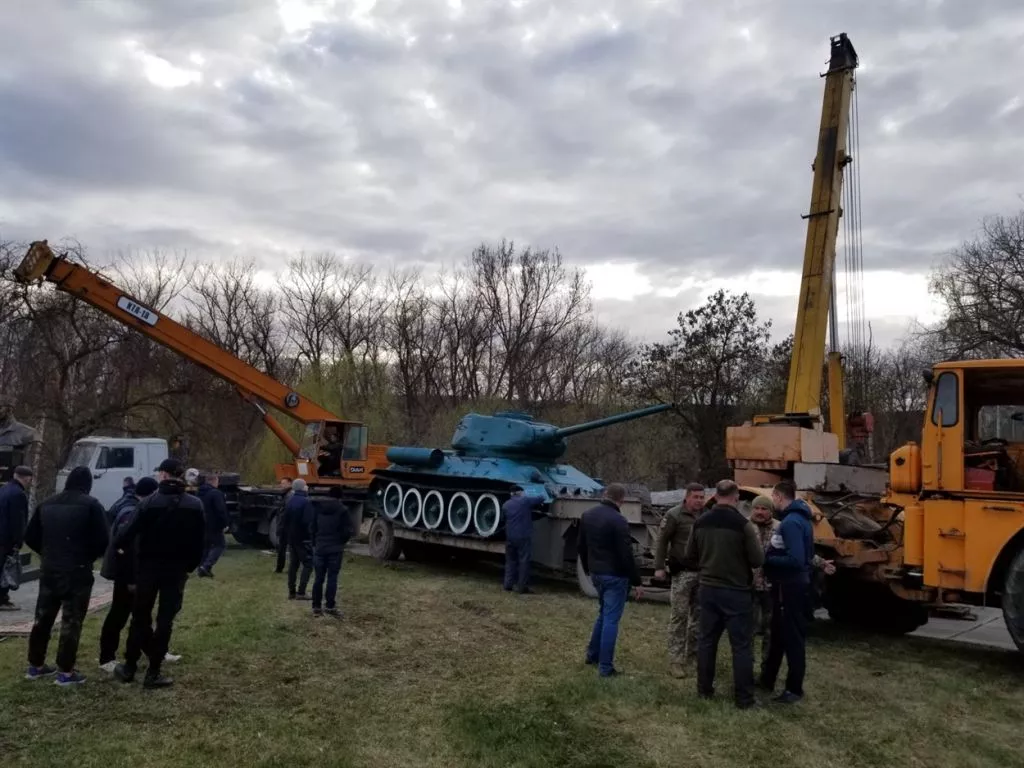 Демонтувати тридцятитонну «тридцятьчетвірку» виявилось справою непростою. Попри те, двома потужними кранами за якихось дві години таки вдалося зрушити бронетехніку з бетонного постаменту й встановити на тягач. У супроводі поліцейського патруля танк доправили на територію військової частини й міськвиконком далі вирішуватиме, що з ним робити далі.