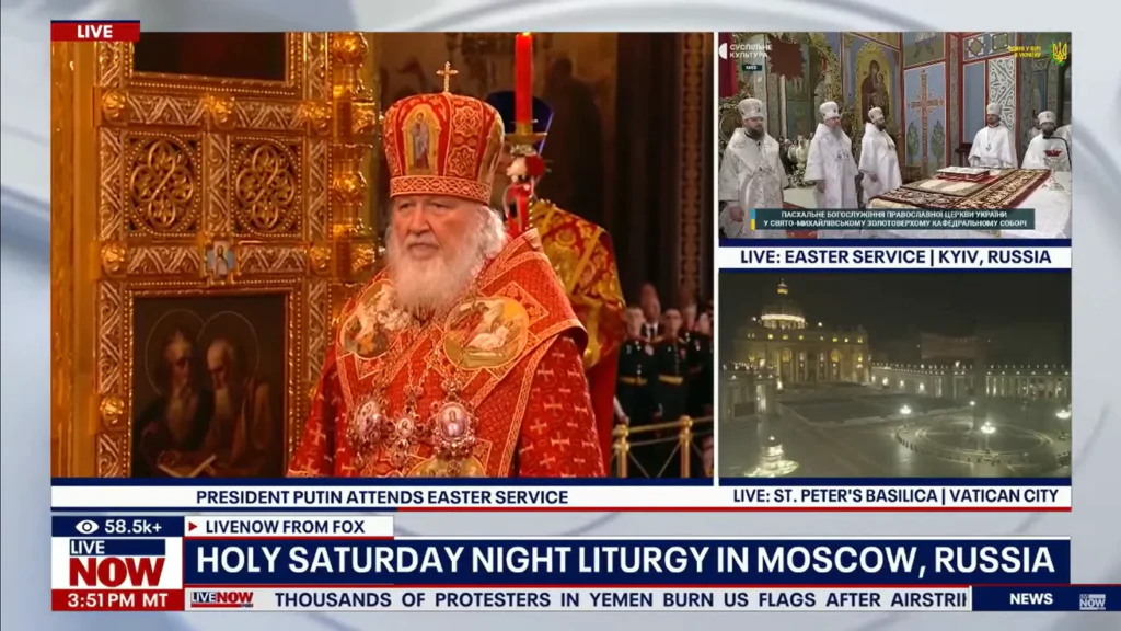 Fox News показував богослужіння у росії, де зʼявився очільник російської православної церкви та лідер рф володимир путін.