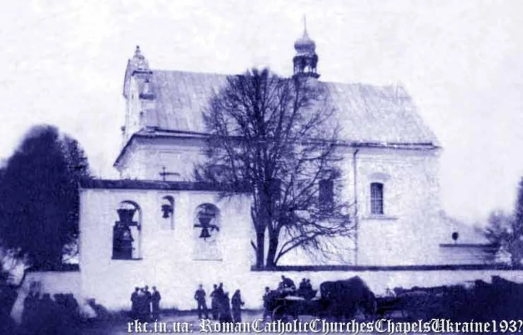 Римо-католицьку парафію у ньому фундував перший католик в давньоукраїнській шляхетській родині Ян Лагодовський. Є про це документ від 13 січня 1607 року. У 1607-1608 роках тут збудували дерев’яний храм Народження Пресвятої Діви Марії, який тоді ж чи пізніше отримав ще й муровану частину.