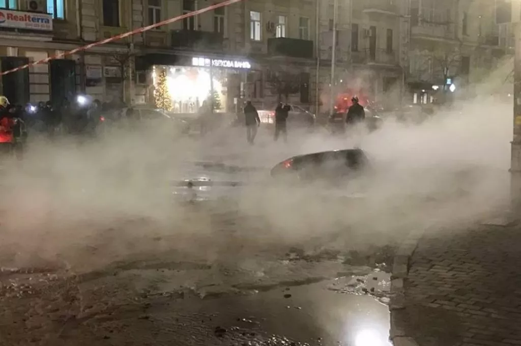 Центр Києва залило кип’ятком – авто провалилося під асфальт