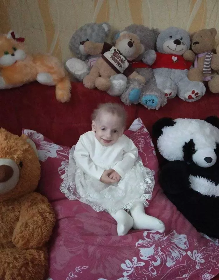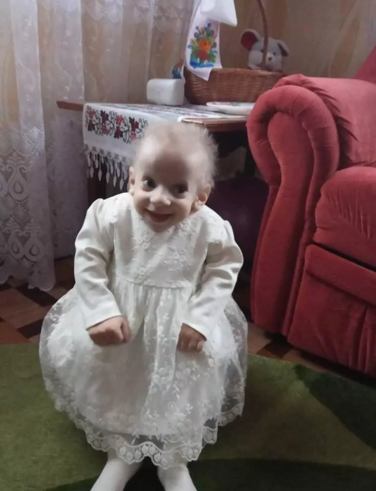 І якщо організм крихітки старіє дуже швидко, то зовні, як розповідає мама, хвороба не так жорстко наклала свій відбиток. Серед основних моментів – надто прозора шкіра на тілі, пігментні плями. А от очі, погляд… Як у дорослої людини, яка уже прожила життя, – проникливі та задумливі…