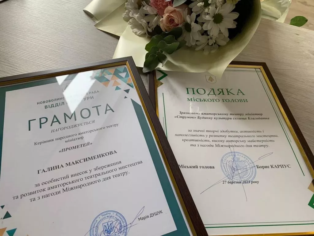 Начальниця відділу культури Марія Душук привітала усіх акторів з успішним виступом та нагородила керівника Галину Максименкову грамотою за особистий внесок у збереження та розвиток аматорського театрального мистецтва.
