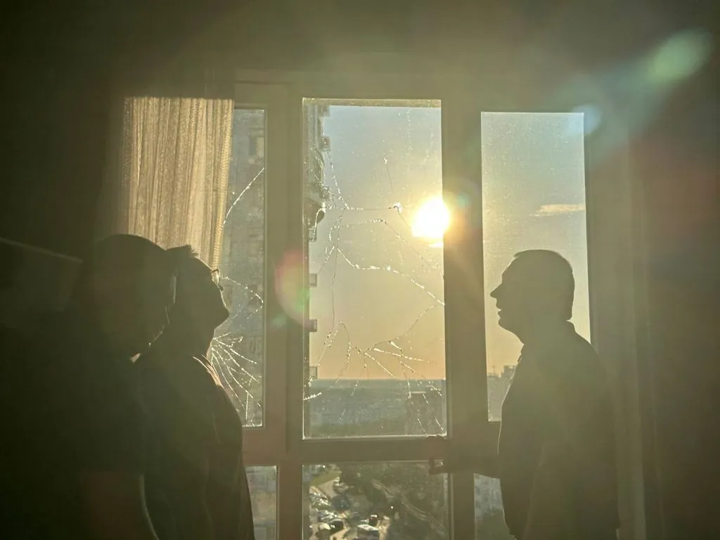 У будинку вибито вікна, пошкоджено кондиціонери, посічено фасад будівлі. Також пошкоджень зазнали близько 15 машин.
