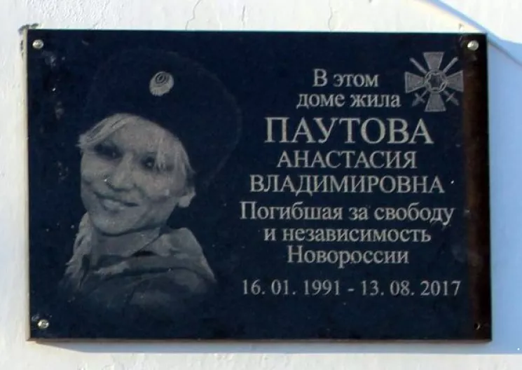 Повідомляється, що на одному з будинків, де мешкала терористка під час свого “відрядження” до окупованого Донбасу, встановили меморіальну дошку, на якій зазначено, що Паутова загинула захищаючи “Новоросію”.