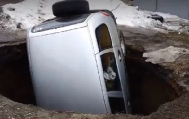 Зазначається, що транспортний засіб було припарковано біля гаражів. Він майже повністю вмістився в яму, що утворилася через руйнування каналізаційної труби. Вода підмила ґрунт, і той не витримав ваги автомобіля.