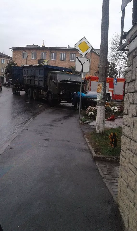 На вулиці Шевченка у Горохові вантажівка КамАЗ зіткнулася з легковим автомобілем. Водій та пасажирка легковика отримали травми.