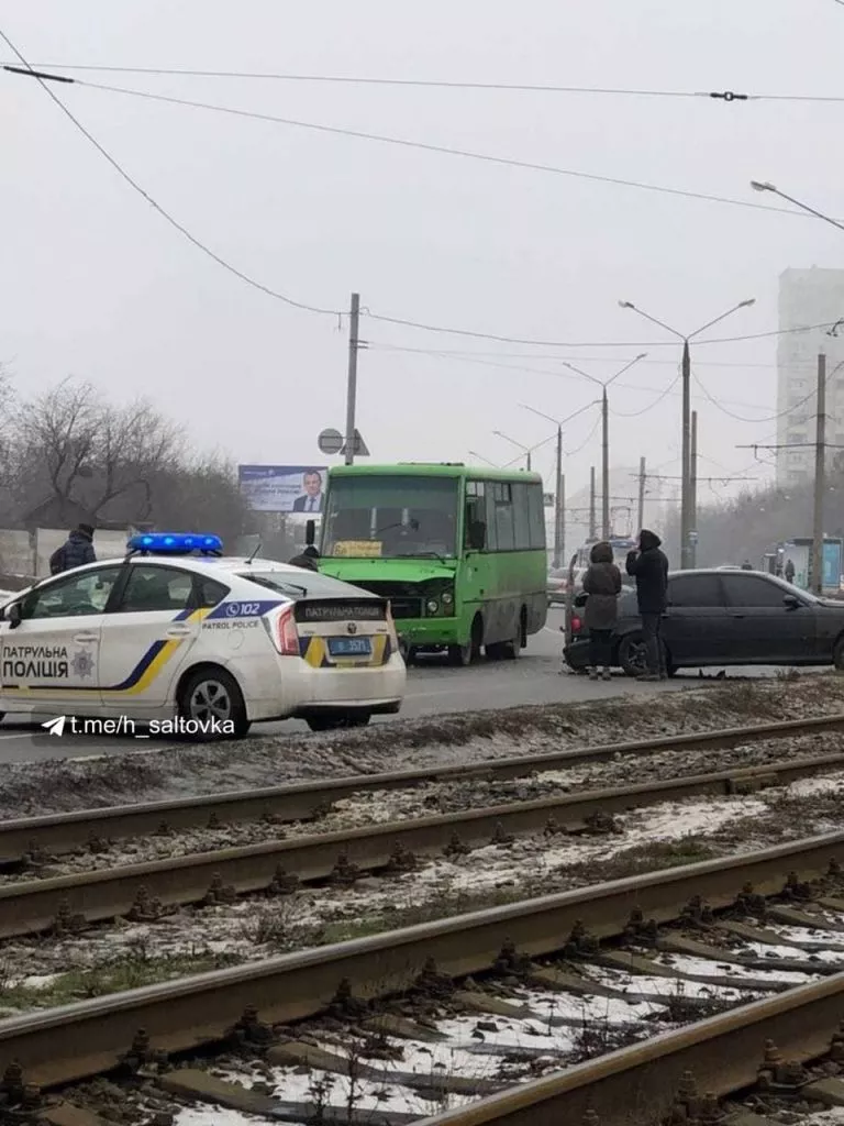 Унаслідок зіткнення постраждав бампер BMW і корпус маршрутного таксі. Як пишуть харків’яни, на момент аварії в салоні громадського транспорту перебувало п’ятеро пасажирів.
