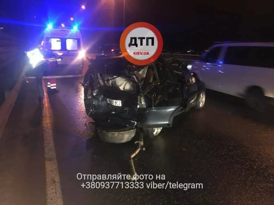 У неділю ввечері, 26 листопада, в Києві на Південному мосту трапилася автомобільна аварія за участю вантажівки-бензовоза та легковика Opel Vectra із польськими номерами.