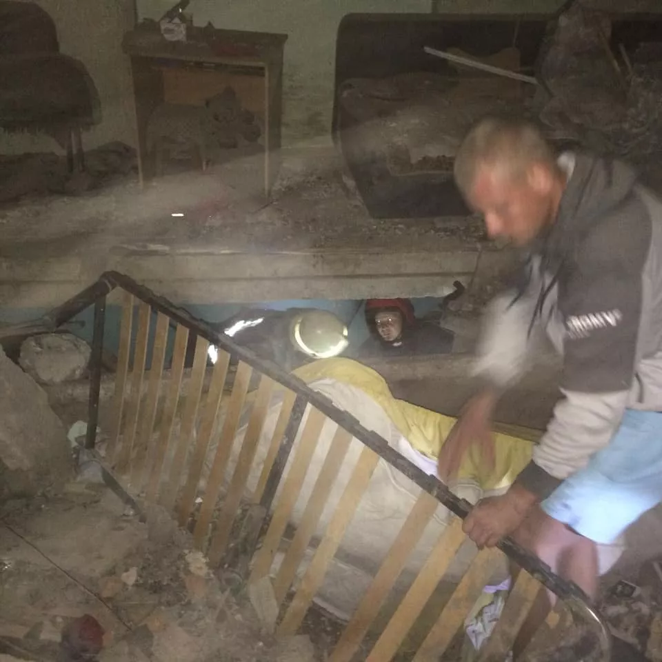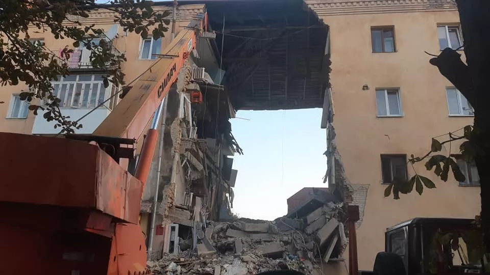 Попередньо стався обвал 2-го під’їзду, в якому знаходились 15 квартир та перукарня: 7 квартир знищено (4-однокімнатні, 3-трьохкімнатні та приміщення перукарні), зазнали пошкоджено 8 квартир (3 – двокімнатні, 5 – трьохкімнатних).