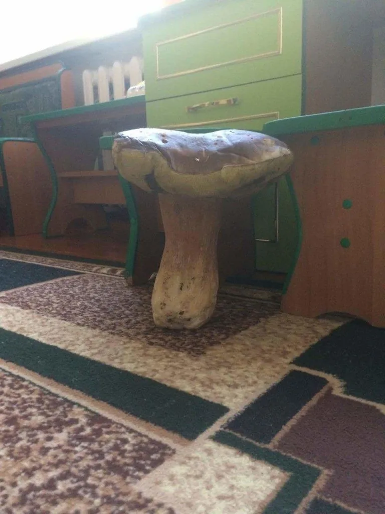 Адже розміром цей гриб з відро: і в діаметрі шапки, і по висоті він такий же. А заважив цей білий 1 кілограм 350 грамів.