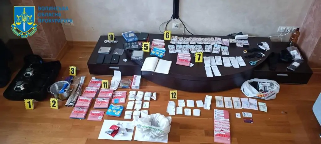 Під час обшуку орендованого помешкання, в якому чоловіки проживали у Луцьку, виявили 410 г метадону, канабіс, зіп-пакети, пакувальну стрічку, рулони з фольгою, електронні ваги, грошові кошти, понад 1600 накладних про відправлення посилок, стартові пакети, блокнот із записами.