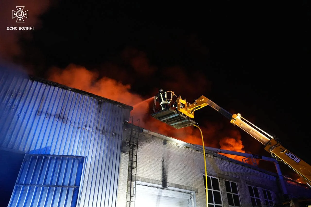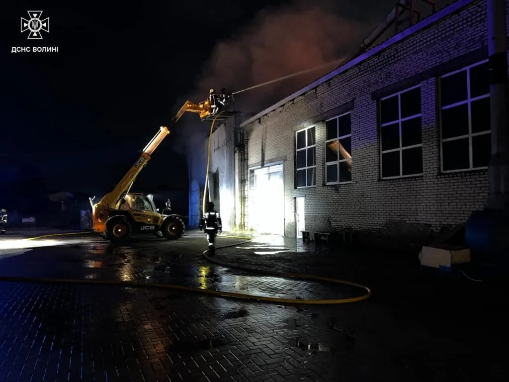 У Луцьому районі ліквідували пожежу на підприємстві після нічного обстрілу