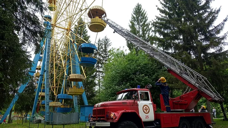 У Луцьку, в Центральному парку культури і відпочинку ім. Лесі Українки, 23-го травня раптово зупинилося колесо огляду. Людям, які застрягли на висоті, прийшли на допомогу рятувальники.