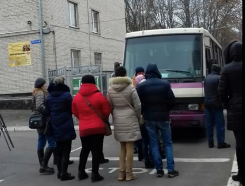 У Луцьку біля Волинського обласного військового комісаріату родичі призовників не пропускали автобус, який прямував на вокзал.
